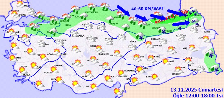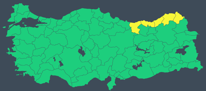 Meteoroloji Genel Müdürlüğü tarafından yapılan son tahminlere göre, yurdun kuzeydoğu kesimlerde beklenen yağışların; Trabzon, Rize, Artvin ve Ardahan çevreleri ile Giresun'un doğu kesimlerinde kuvvetli ve yer yer çok kuvvetli (20-75 kg/m2) olacağı tahmin ediliyor.