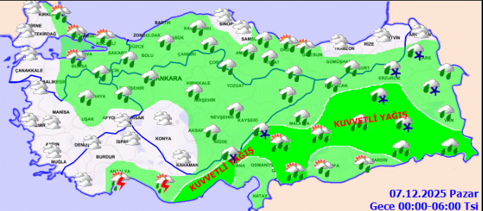 Cuma günü başlayan yağışların, Antalya ve Muğla il geneli, İzmir ve Aydın'ın kıyı kesimleri ile Isparta'nın güney ve Burdur'un doğu ilçelerinde kuvvetli, Muğla'nın kıyı şeridinde çok kuvvetli ve yer yer şiddetli olması bekleniyor.