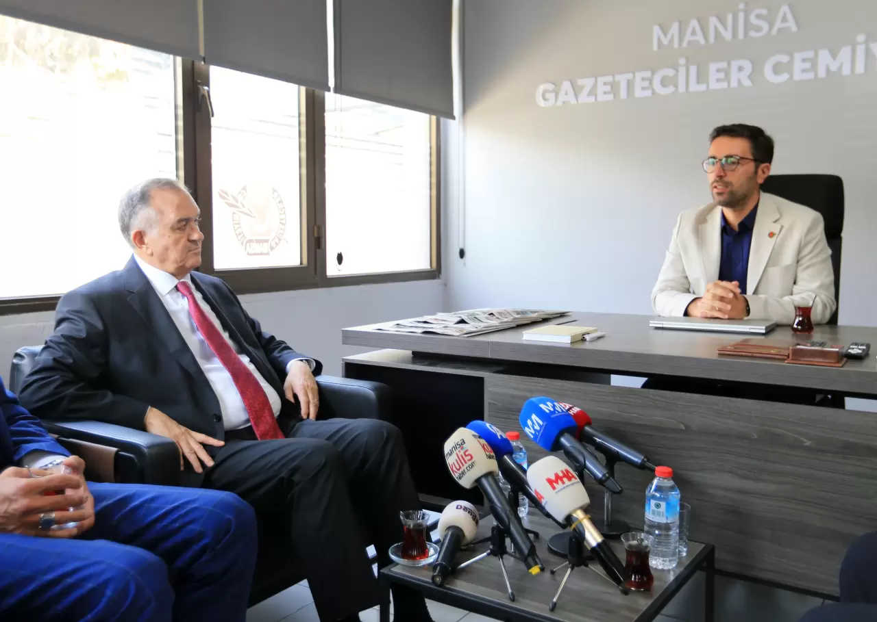 Akçay, Manisa Gazeteciler Cemiyeti Başkanı Önder Aydın ve yönetim kurulunu ziyaret etti.