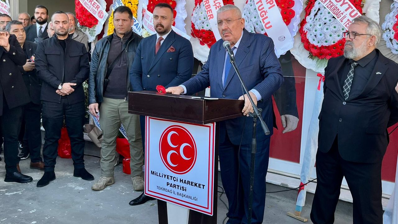 MHP Genel Başkan Yardımcısı Semih Yalçın, Tekirdağ'da partisinin il binasının açılış törenine katıldı. Yalçın, törende yaptığı konuşmada, Türkiye'nin en önemli gündeminin ‘Terörsüz Türkiye’ olduğunu belirterek, "Biliyorsunuz Türkiye çeşitli gündemlerle meşgul haldedir. Ama bunda en öne çıkan bizce 'Terörsüz Türkiye' meselesidir. Bu konuda Milliyetçi Hareket Partimizin önderlik yapmak suretiyle son 1 yıl içerisinde bu süreci yürütmüş, bu sürecin bir parçası olmuş ve Cumhur İttifakı olarak da AK Parti ile birlikte çok önemli mesafeler kaydetmiştir. 'Terörsüz Türkiye' dendiğinde, sürecin geçen yıl yani 2024 yılı Ekim ayı başından itibaren bugünlere kadar uzanıldığını ama gelinen noktada ümit var olduğumuzu hep birlikte müşahede ediyoruz" dedi.