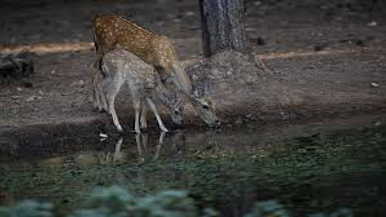 Görüntülerde, alageyik ve yavrularının üretme istasyonundaki göletten su içtiği anlar yer alıyor.