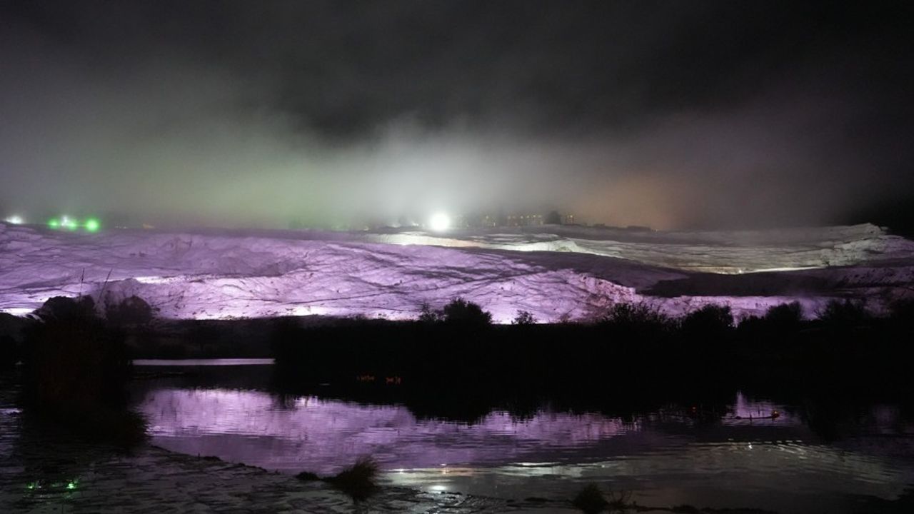 Denizli’de gün boyunca etkili olan şiddetli yağmurun ardından akşam saatlerinde kent genelinde yoğun sis etkili oldu. UNESCO Dünya Mirası Listesi’nde yer alan ve “Beyaz Cennet” olarak bilinen Pamukkale travertenleri, sisle birlikte adeta farklı bir atmosfere büründü.
