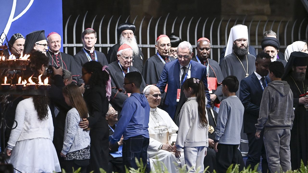 Sant’Egidio Topluluğu’nun uluslararası “Cesur Barış” toplantısının kapanış töreni niteliğindeki bu ayinde, farklı dinlerden liderlerle bir araya geldi.