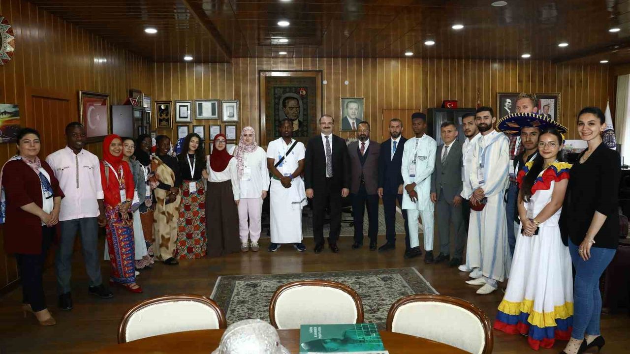 Atatürk Üniversitesi ile Yunus Emre Enstitüsü iş birliğinde düzenlenen 2025 Türkçe Yaz Okulu kapsamında Erzurum’a gelen yabancı öğrenciler, Atatürk Üniversitesi Rektörü Prof. Dr. Ahmet Hacımüftüoğlu’nu makamında ziyaret etti.