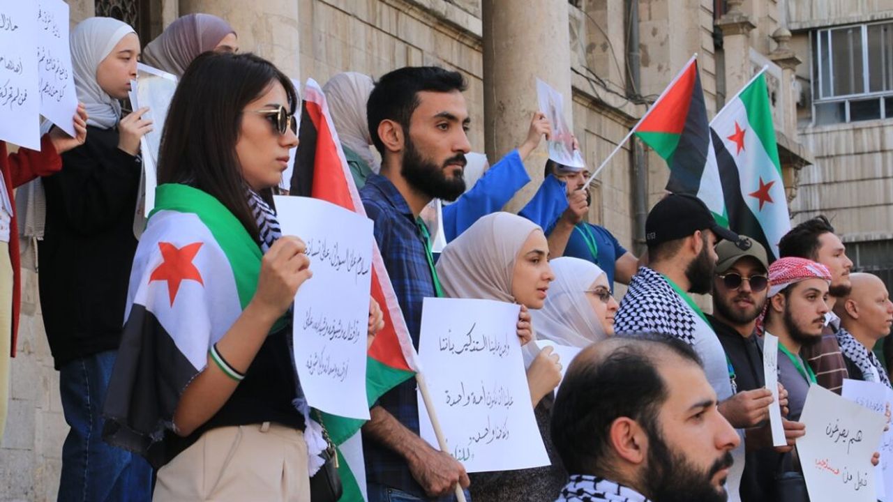 Şam'ın Hicaz Meydanı’nda toplanan göstericiler, Arapça "Gazze'yi yalnız bırakmayın, savaş hala bitmedi", "Gazze'deki soykırımı destekleyenleri boykot edin", "Suriye’den Sudan'a, kalbimiz sizinle", "Sudan’da acıdan başka bir şey yok" yazılı dövizler taşıdı.
