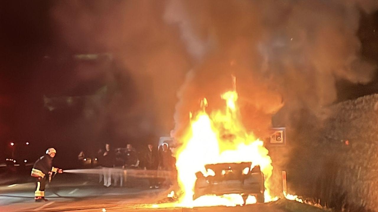 Araçtaki yangın, ekiplerin müdahalesiyle kontrol altına alınarak söndürüldü.