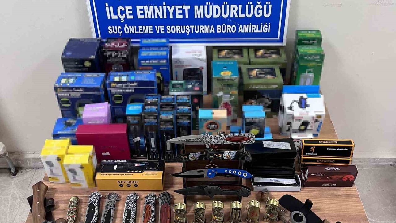 Konya’nın Seydişehir ilçesinde bir evde yapılan aramada taşınması ve bulundurulması yasak 26 adet kesici delici alet ve yurt dışından kaçak olarak getirilen 40 farklı türden malzeme ele geçirildi.