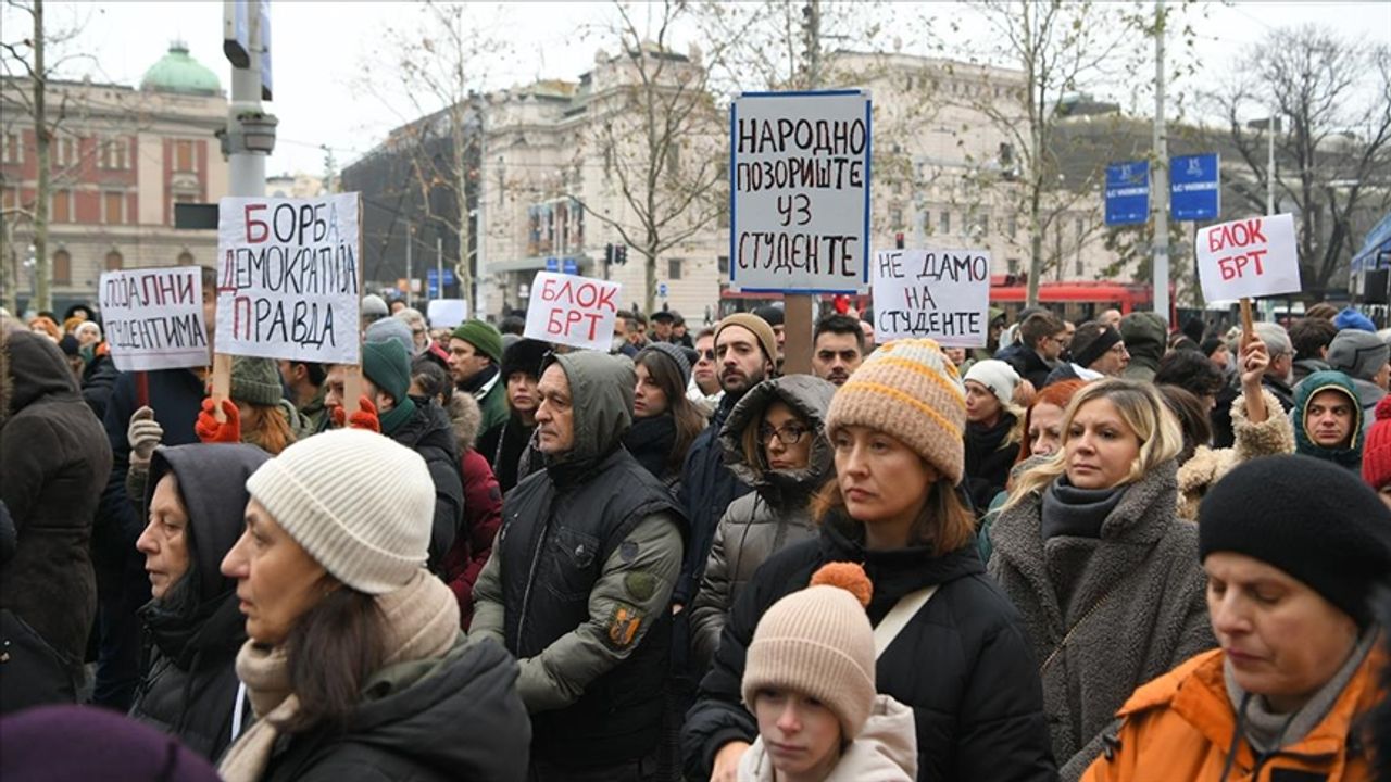 Novi Sad'daki tren istasyonunda beton sundurmanın çökmesi sonucu hayatını kaybeden 16 kişiyi anmak ve hükümete tepki göstermek isteyen on binlerce kişi kente geldi.