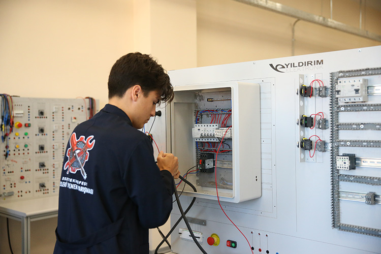 Yaz tatili boyunca okulun atölye, laboratuvar ve teknik birimlerde yoğun hazırlık yapan ekip, elektrik tesisatı uygulamaları, pano bağlantıları, sistem kurulum senaryoları ve arıza tespiti gibi konularda kapsamlı çalışmalar gerçekleştirdi.
