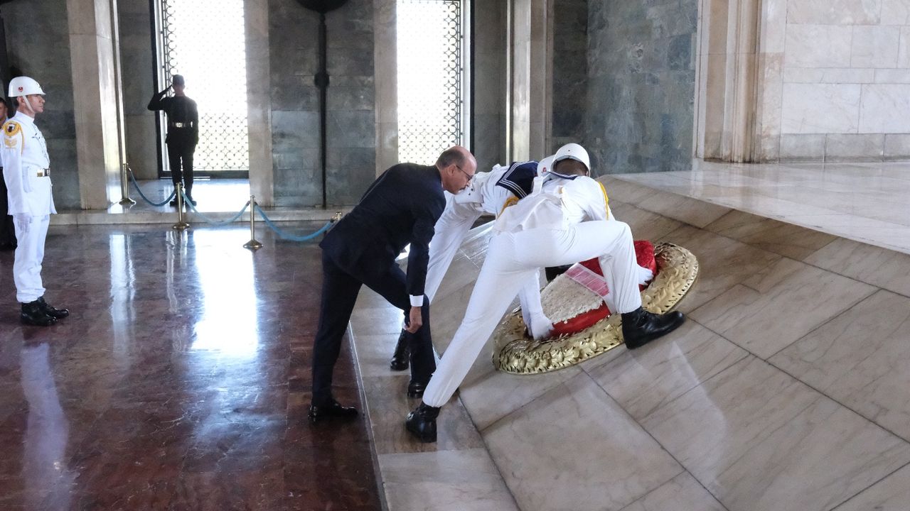 Heyet, Atatürk’ün mozolesine çelenk sunarak saygı duruşunda bulundu. Ardından Misak-ı Milli Kulesi'ne geçen Türk Eğitim-Sen Genel Başkanı Talip Geylan, Anıtkabir Özel Defteri’ni imzaladı. Geylan, deftere yazdığı mesajında Cumhuriyet'in, yalnızca Türkiye için değil, tüm Türk dünyası için ilham kaynağı olduğuna vurgu yaptı.