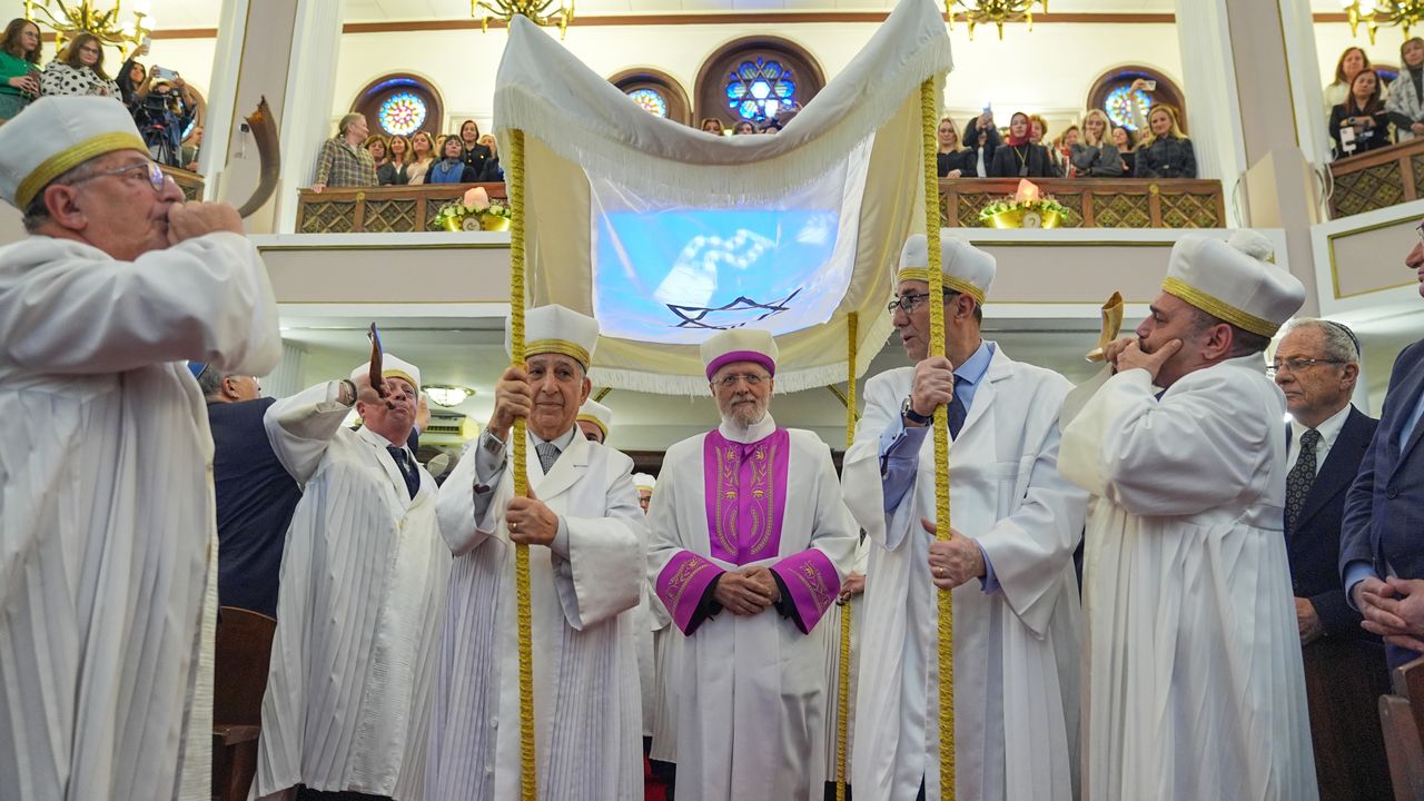 Sivi, hahamlar, dini görevlilerle birlikte boynuzdan yapılan şofar adlı enstrümanları üflerken dini usullere göre sinagoga girdi. Duaların edilmesi, sonrasında çocuk korosunun şarkılar söylemesiyle devam eden törende, Sivi'nin boynuna "10 Emir Takısı" takma seremonisi gerçekleştirildi.