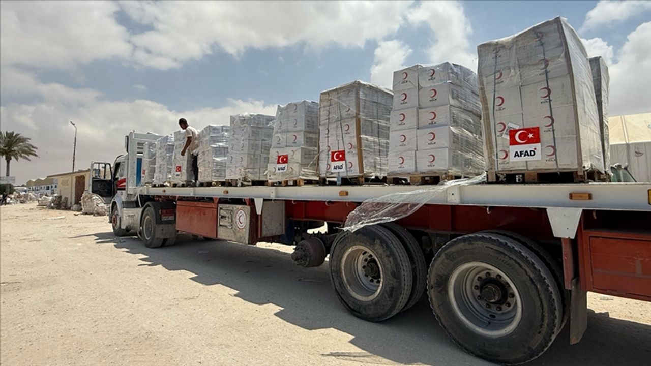 Bu çerçevede 17. "İyilik Gemisi"nden indirilen insani yardım malzemelerinin bir kısmını taşıyan 25 tır, Gazze halkı için Refah Sınır Kapısı'na doğru yola çıktı.