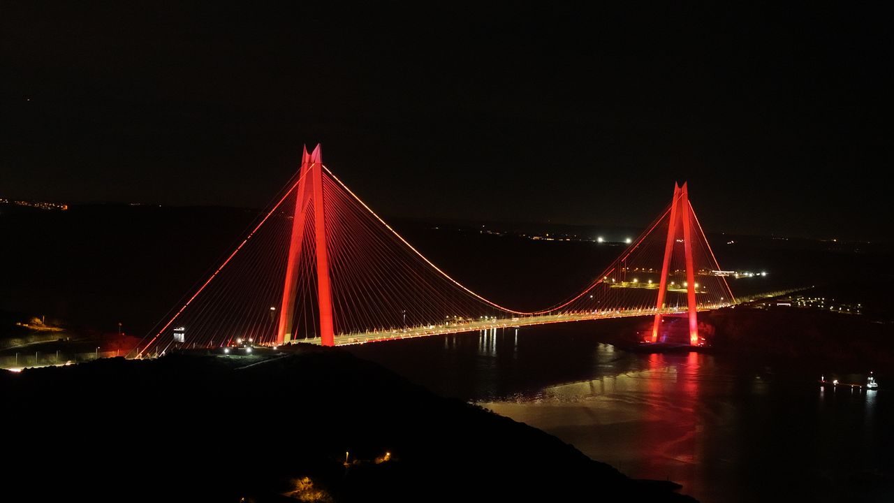 Önemli günlerde renk ve ışık gösterileriyle aydınlatılan köprü, bu kez "Radyasyon Onkolojisi Farkındalık Ayı" ve "25 Kasım Radyasyon Onkologları Günü" kapsamında radyoterapiyi simgeleyen turuncu renge büründü.