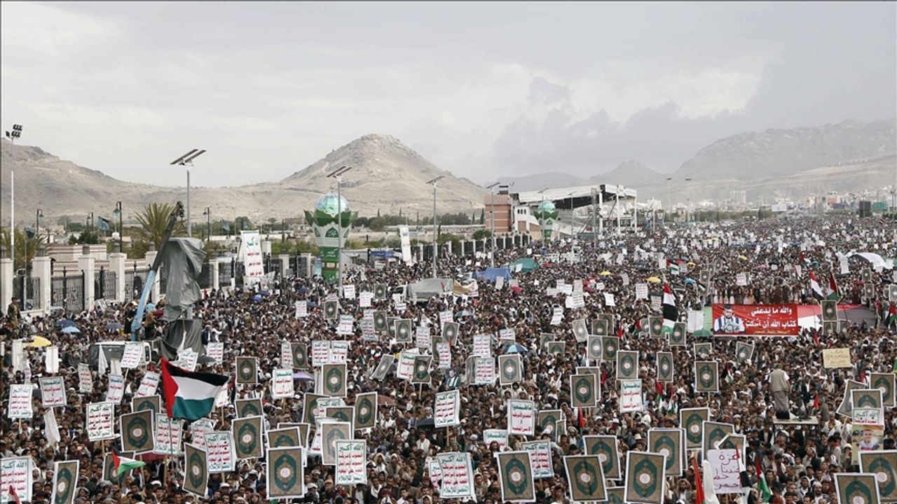Göstericiler ayrıca "Gamari (Husi yönetiminin Genelkurmay Başkanı Muhammed Abdulkerim el-Gamari) ve Sinvar, Tufan'ın hür komutanları", "Sinvar'ın yıl dönümünde Kassam Tugaylarına selam olsun" sloganlarıyla Filistin direnişini desteklemeye devam edeceklerini ifade etti.