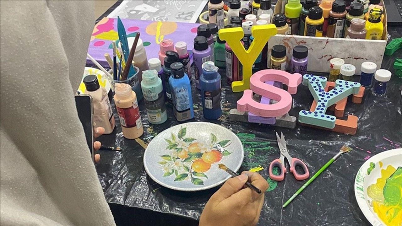 Atölyede, ahşap ve seramik boyama, tuval çalışması ile bez çanta tasarımı yapan bireyler, hem el becerilerini geliştiriyor hem de sosyalleşme imkanı buluyor.