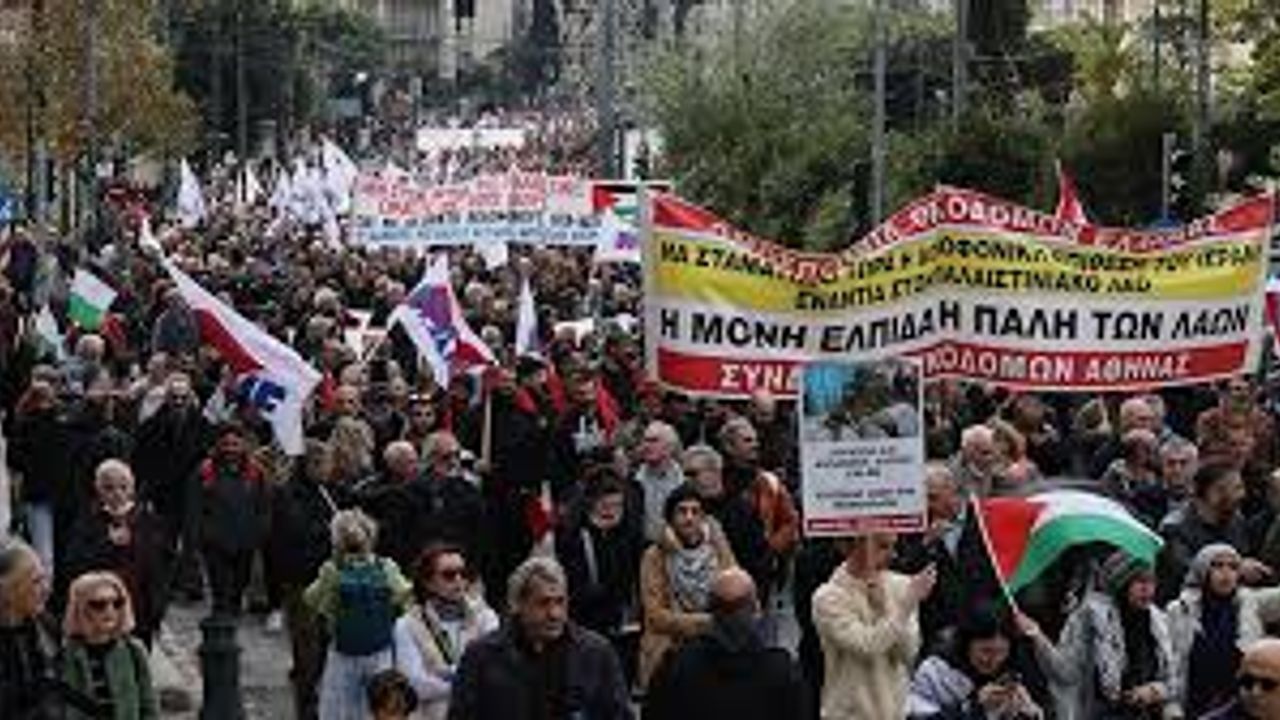 Filistin'e destek veren çeşitli platformlar ve sivil toplum kuruluşlarının çağrısıyla yüzlerce kişi, "Uluslararası Filistin ile dayanışma günü" vesilesiyle başkent Atina'daki Eleftheri Parkı'nda buluştu.